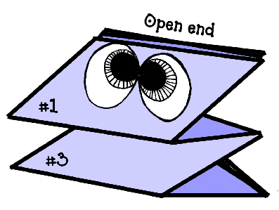 By the time most kids have reached the third grade, they have probably folded a piece of notebook paper into a tube and then folded the tube into fourths to make a little puppet. They draw eyes on one section and a tongue and teeth on another and make the puppet talk by moving their fingers up and down. It's the kind of activity kids engage in when they're supposed to be practicing their spelling words or their times tables. Here's how to take those folded pieces of paper to the next level and actually use them as a creative tool for storytelling. (Graphic is a a scan of a real puppet. The graphic is a little smaller than the actual puppet and the nose got flattened in the scanner, but you can see how much character this guy has even without being animated by eager fingers!) | |