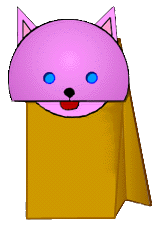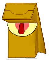 | 7.To use your puppet, place your hand inside the bag with your fingers